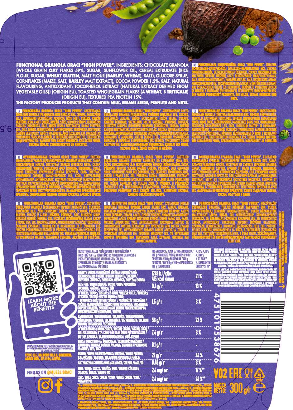 موسيلي جراتشي بنكهة ا لشوفان والكاكاو والبازلاء – 300 جم