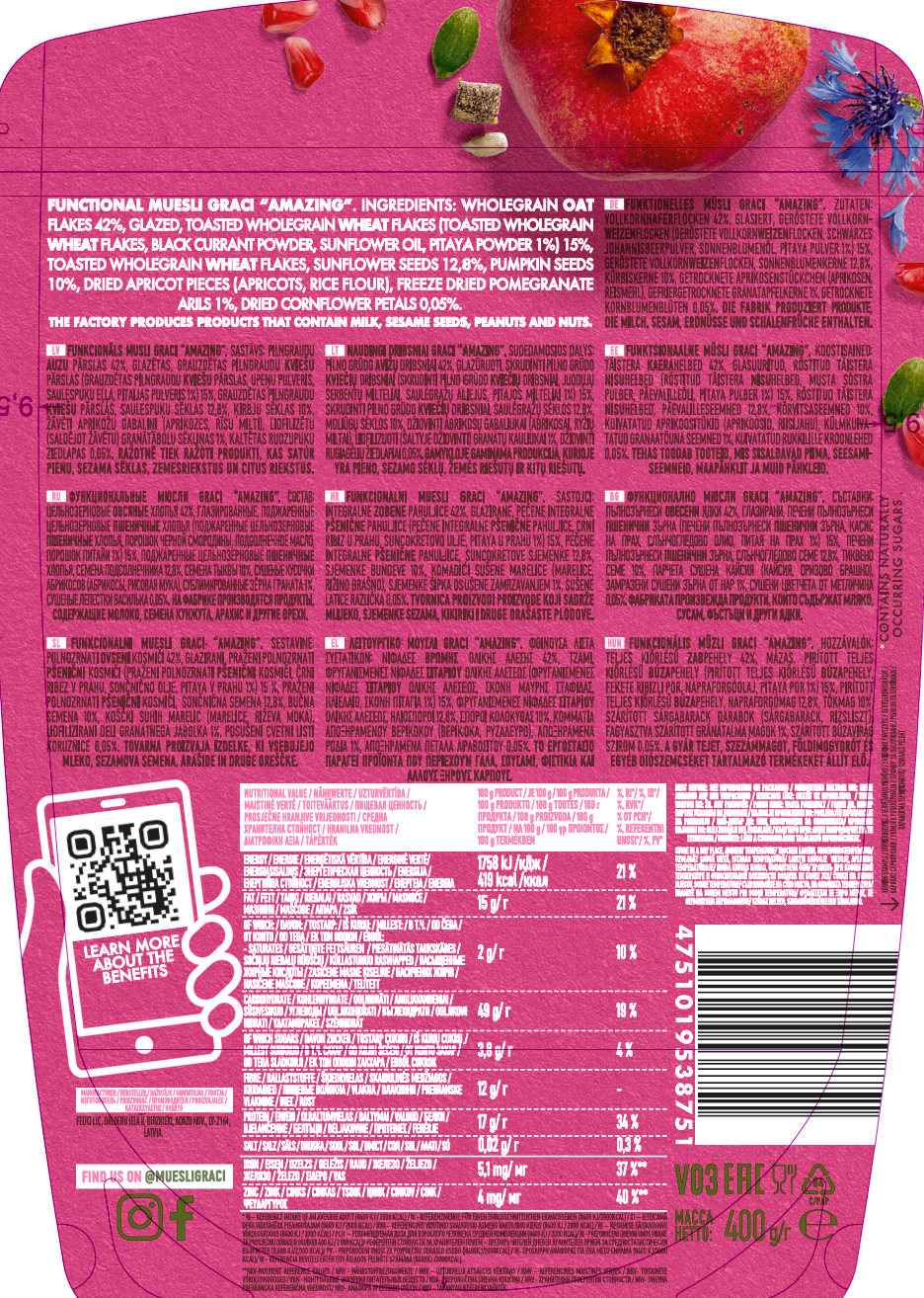 موسيلي جراتشي بنكهة البذور وفاكهة التنين وبتلات الزهور- 400 جم